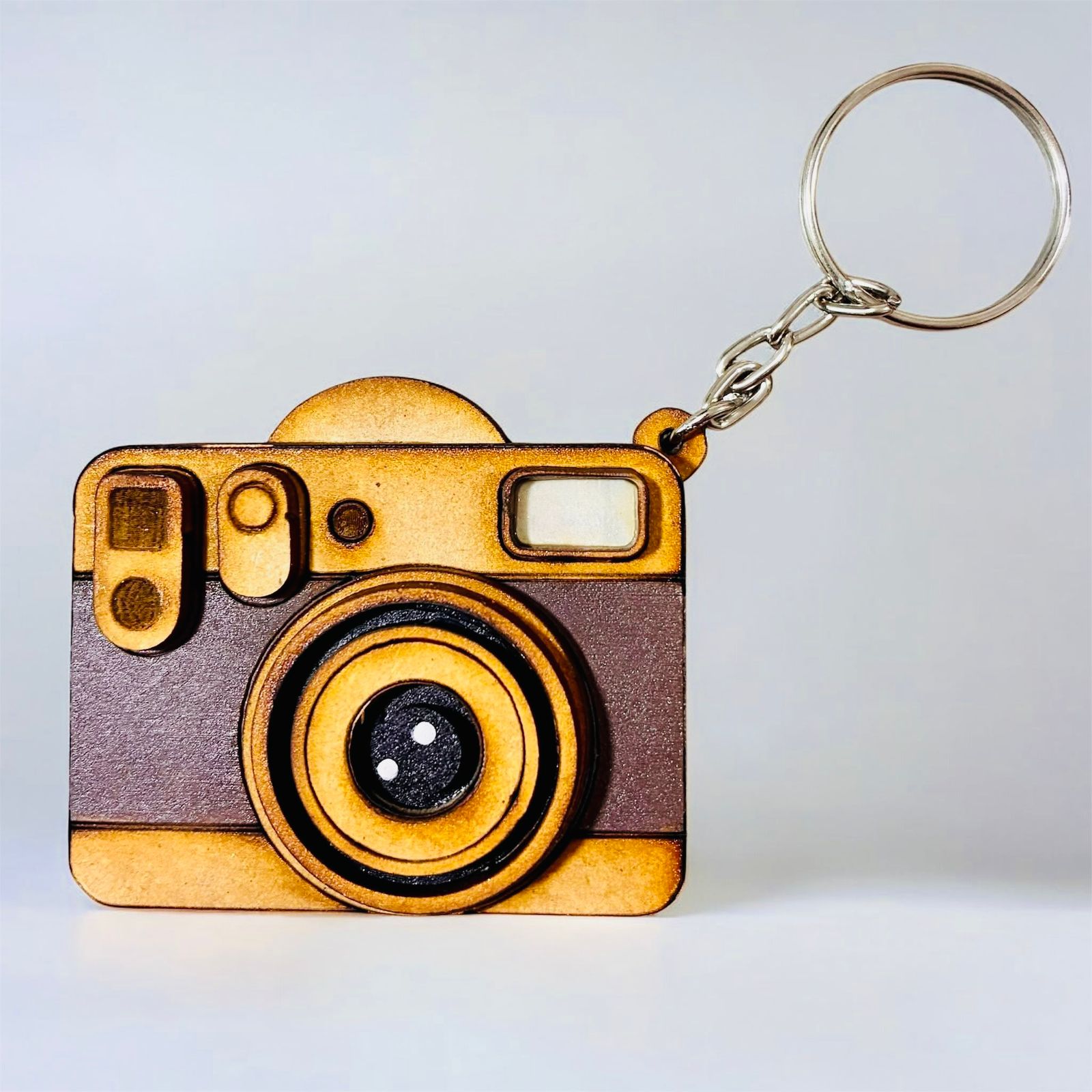 Llavero tipo cámara elaborado en madera MDF con foto sorpresa 💕